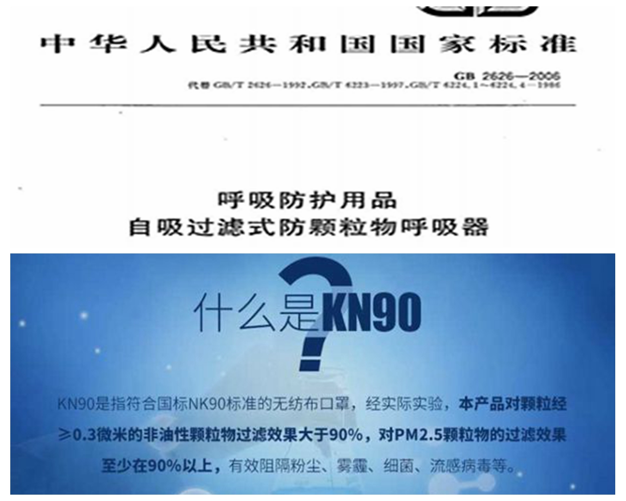 KN90:對于0.075微米以上的非油性顆粒物過濾效率大于90%