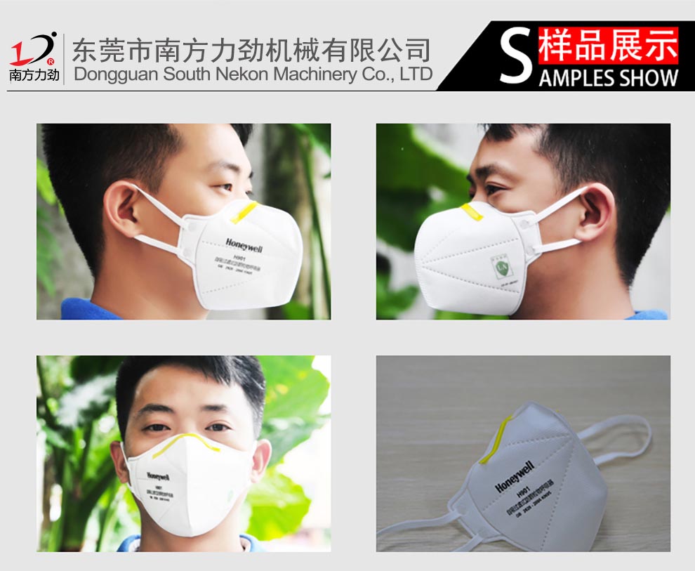 HK-MMF909D折疊口罩本體機、HK-MMF910D鼻梁條耳帶一體機、HK-MMF911D鼻梁條頭帶一體機,是為霍尼韋爾定制的全自動折疊口罩產線設備:
